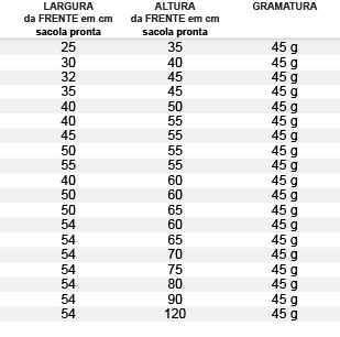 • Saco em TNT vários modelos tais como corte reto, com cordinha transpassada, com fita costurada que atende a demanda das mais diversas lojas de varejo